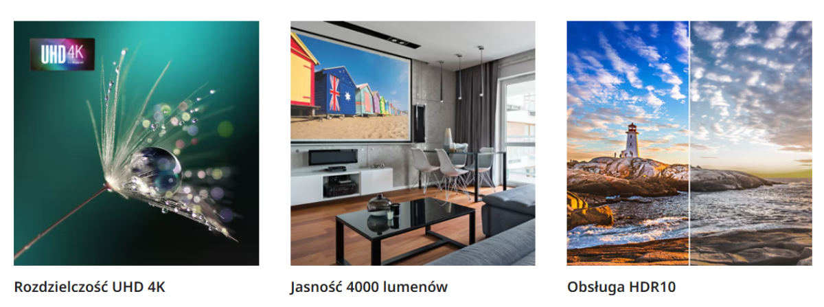 Zanurz się w zupełnie nowym świecie i podziwiaj obrazy o niesamowitej szczegółowości z wiernie odwzorowanymi kolorami. Przy projekcjach UHD 4K sceneria jest budowana za pomocą aż 8,3 miliona pikseli, co przekłada się na cztery razy większą rozdzielczość niż wariant Full HD.
