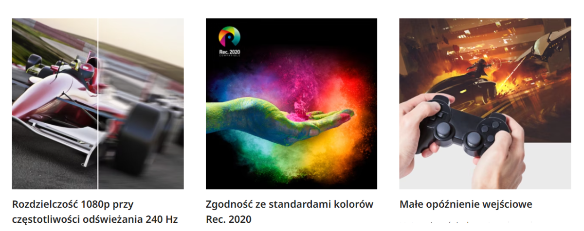 Możesz cieszyć się dynamiczną kontrolą w grach wyścigowych, sportowych lub akcji dzięki wyjątkowo niskiemu opóźnieniu na poziomie 5 ms.