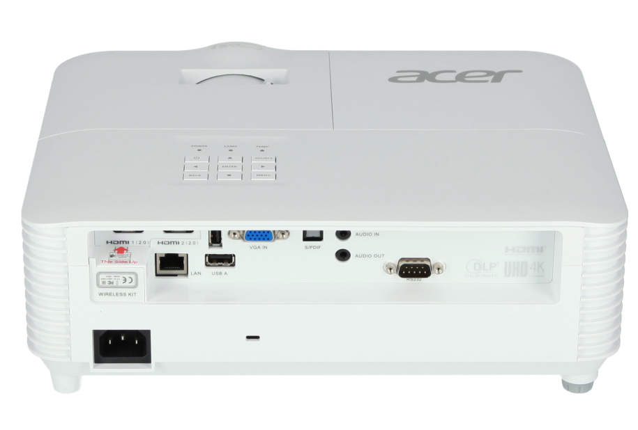 Projektor P5827a 3D DLP firmy Acer ma 4000 Ansi lumenów, kontrast 10000:1 i rozdzielczość UHD (4K2K) 3840 x 2160. Producent Acer określa żywotność lampy na 12000 godzin, co przekłada się na ponad 16,4 roku przy 2 godzinach dziennie. Projektor oferuje również zintegrowany odtwarzacz multimedialny, którego można używać do bezpośredniego odtwarzania plików. Wbudowana pozioma i pionowa korekcja trapezu zapewnia swobodę podczas pozycjonowania projektora. Możliwa jest szerokość obrazu do 643 cm, ponieważ projektor ma 4000 Ansi lumenów. Projektor tworzy pomieszczenia z resztkowym światłem o mniejszej szerokości obrazu, zalecamy maksymalnie 429 cm. Ponadto opcja Bluetooth jest przydatnym dodatkiem do projektora, szczególnie w przypadku bezprzewodowej transmisji dźwięku. Odtwarzanie 1080P i 4K, a także 3D również nie stanowi problemu dla projektora, co oznacza, że wszystkie obecnie oferowane formaty Blu-ray są rozpoznawane przez projektor. Przy 26 decybelach projektor jest bardzo cichy w porównaniu do innych projektorów.