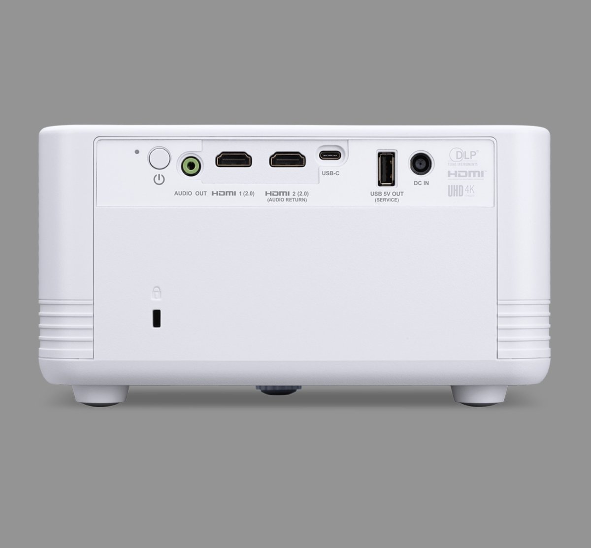 Port USB typu C tego projektora umożliwia bezproblemową łączność z urządzeniami mobilnymi, takimi jak telefony, laptopy, tablety i konsole do gier, umożliwiając udostępnianie wysokiej jakości obrazu i dźwięku wielokanałowego za pomocą jednego kabla.