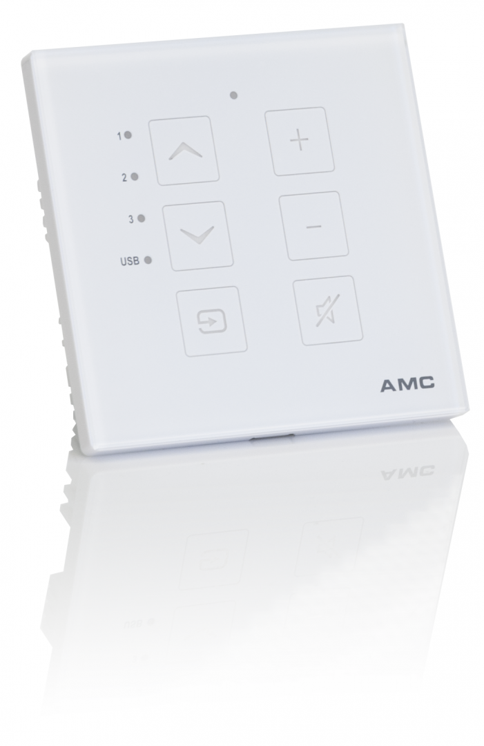 Szklany wygląd, powierzchnia wrażliwa na dotyk do wyboru źródła, regulacji głośności i wyciszenia. Dostępny w kolorze czarnym i białym. Kontroler ścienny ma wbudowane wejście audio umożliwiające lokalne podłączenie dodatkowych źródeł dźwięku.