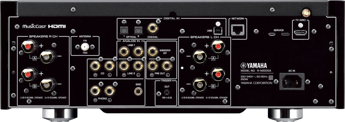 Model R-N2000A obsługuje system multiroom MusicCast. Co więcej, jest kompatybilny z różnymi serwisami streamingowymi, w tym m.in. Amazon Music i Spotify. Pozwala to w pełni cieszyć się wyjątkowo wysokiej jakości, bezstratnym brzmieniem. Urządzenie może być ponadto wykorzystywane jako zewnętrzny przetwornik cyfrowo-analogowy (podłączany za pośrednictwem znajdującego się na tylnym panelu złącza USB-B). O precyzję pracy dba dedykowany zegar kwarcowy. Urządzenie obsługuje także natywnie format DSD 11,2 MHz oraz pozwala na odtwarzanie materiałów audio z częstotliwością próbkowania do 384 kHz, co pozwala w pełni wykorzystać możliwości źródeł dźwięku wysokiej rozdzielczości.
