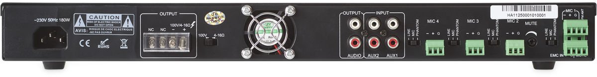 - Wyjście bezpośrednie: 70 V / 100 V / 4-16 Ω
