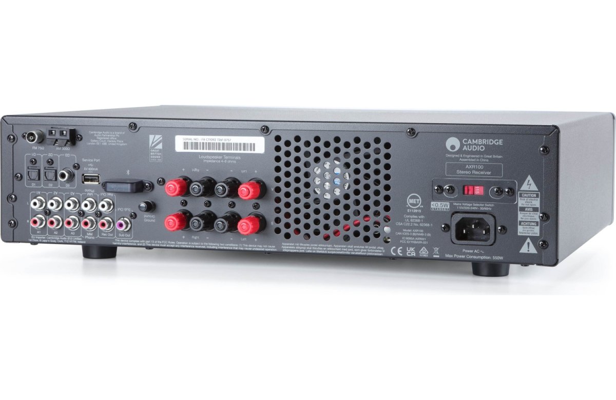 Dzięki mocy 100 W i tunerowi FM/AM, AXR100 to wzmacniacz, który należy traktować poważnie – dzięki zintegrowanemu przedwzmacniaczowi gramofonowemu umożliwiającemu łatwe podłączenie gramofonu oraz Bluetooth do bezprzewodowego odtwarzania muzyki ze smartfona. Dedykowane wyjście subwoofera do napędzania basów i dwa zestawy wyjść głośnikowych zwiększają atrakcyjność R100. Wiele gniazd z przodu i z tyłu opiera się na tej wszechstronności.