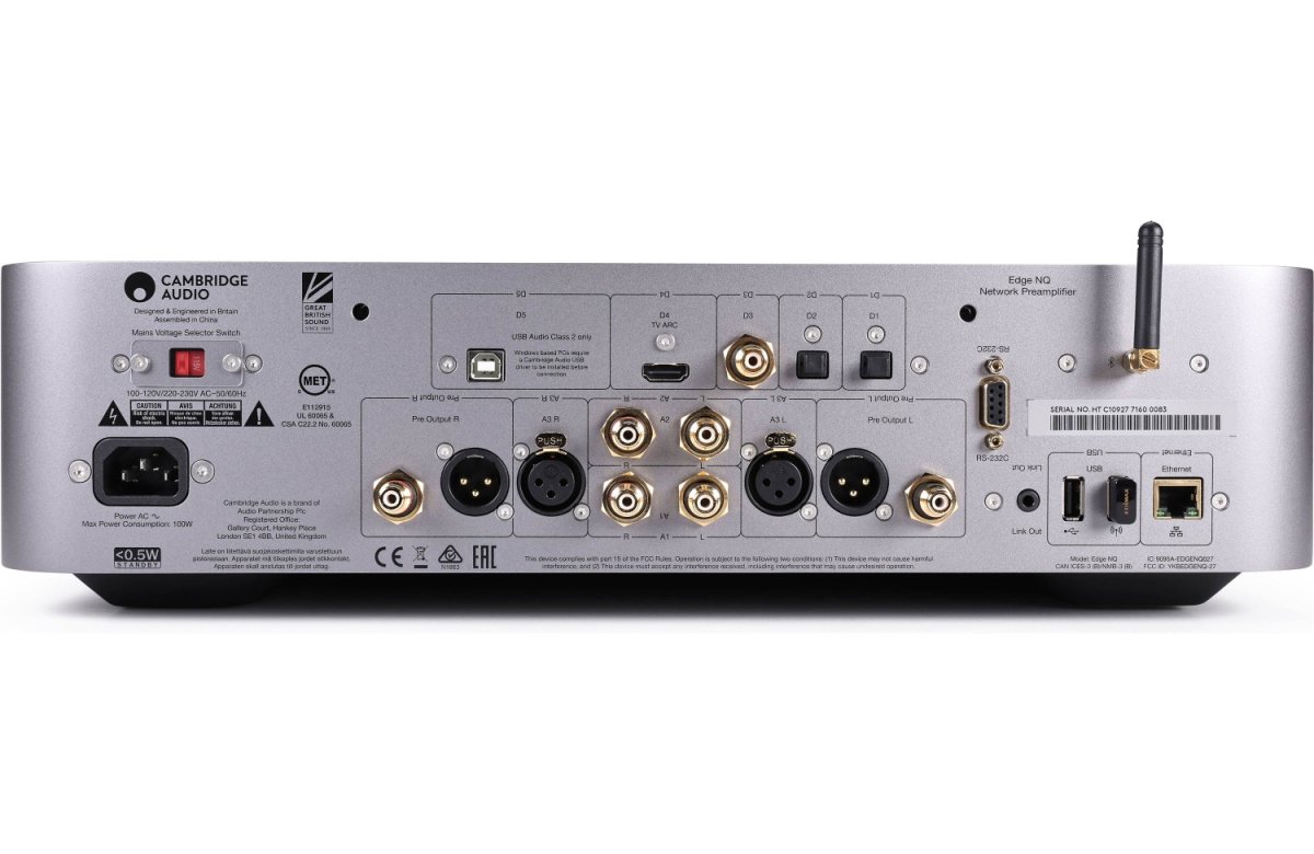 Przedwzmacniacz został wyposażony w pełną paletę połączeń, w tym: S/PDIF, HDMI ARC (Audio Return Channel), USB, aby użytkownik był pewien, że odtworzy każdy rodzaj sygnału, począwszy od cyfrowego PCM do 32 bitów i 384 kHz, na DSD256 skończywszy. Edge NQ wydobędzie z nich nieprawdopodobny realizm, barwy, rytm i kontrolowany bas.