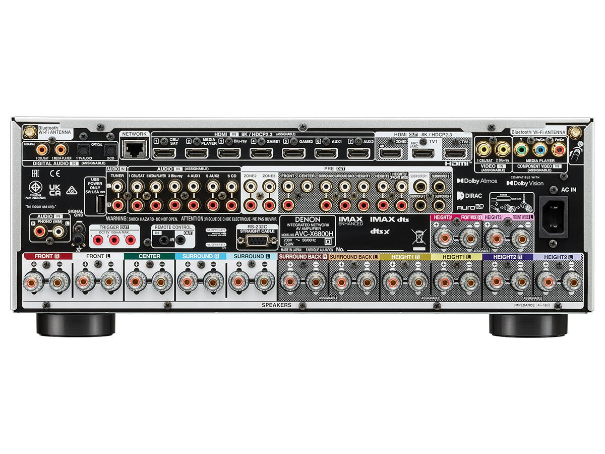 Zaprojektowany i skonstruowany w Japonii wzmacniacz AVC-X6800H oferuje 11.4 kanałów wzmocnienia, zapewniając wyższą jakość dźwięku. Dzięki Dolby Atmos i DTS:X, a także IMAX Enhanced i Auro 3D, AVC-X6800H wypełnia większe przestrzenie zapierającym dech w piersiach dźwiękiem 3D. Korzystaj z technologii HEOS® Built-in by bezprzewodowo streamować swoją ulubioną muzykę.