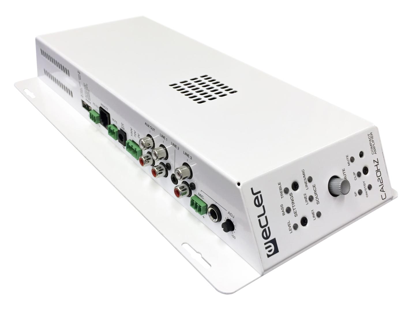 CA120HZ to wersja CA120 o wysokiej impedancji, zapewniająca poziom liniowy 96 W przy 70/100 V, co jest technologią szczególnie odpowiednią w przypadku długich przewodów głośnikowych i/lub liczby jednostek głośnikowych znacznie przekraczających 2 lub 4 jednostki zwykle podłączone do niskiego wzmacniacz impedancyjny. Pomimo niewielkich rozmiarów kryje w sobie niesamowity zestaw funkcji zdalnego sterowania: port szeregowy RS-232, odbiornik podczerwieni i port zdalny 0-10 VDC. CA120HZ jest idealnym rozwiązaniem w zastosowaniach audiowizualnych, które wymagają integracji z zewnętrznymi urządzeniami sterującymi: sale lekcyjne, sale konferencyjne, prezentacje multimedialne, sklepy detaliczne itp.
