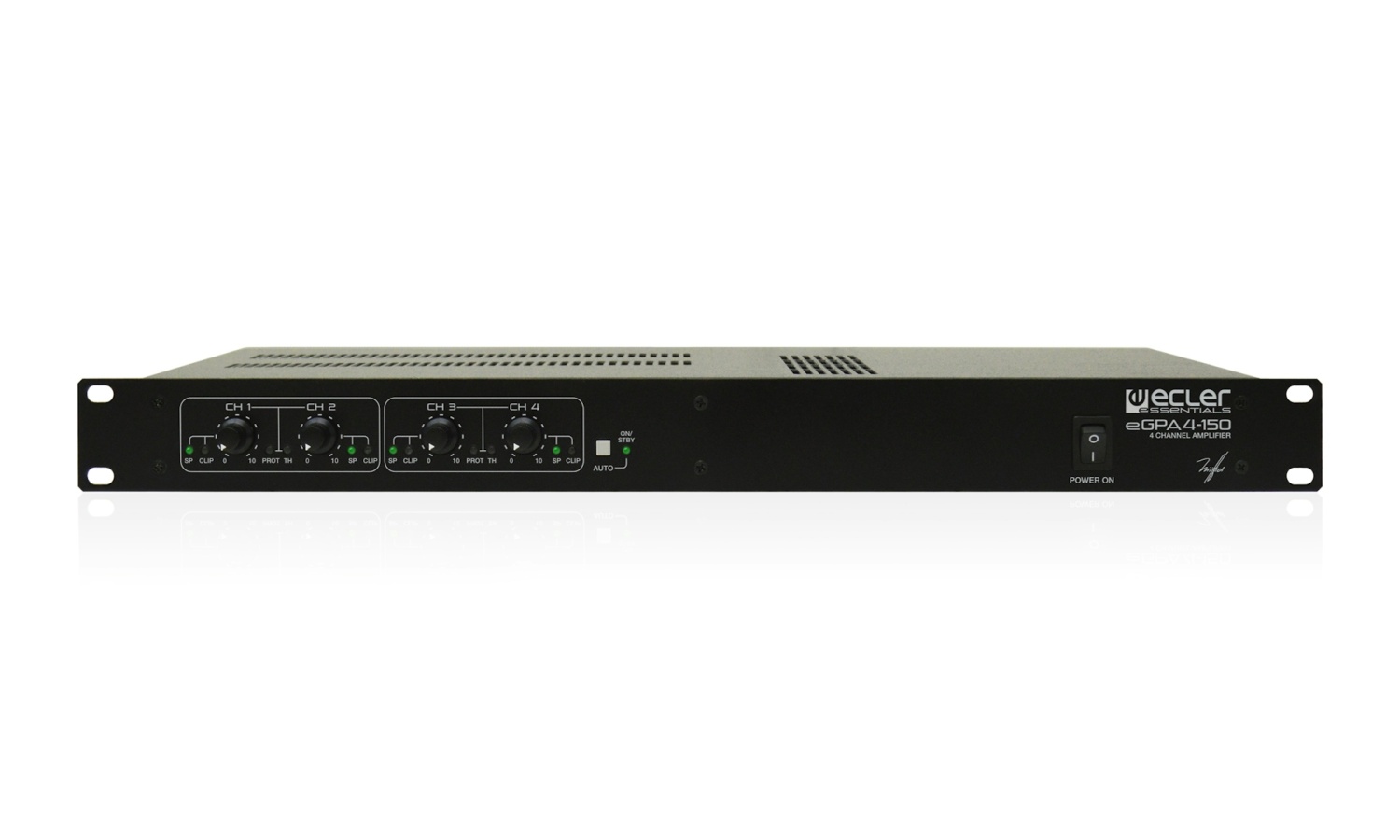 Wzmacniacz kanałowy o wysokiej klasie sprawności (D). 4x150 W RMS @ 4 Ω; Posiada funkcję