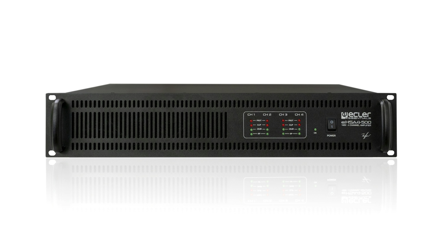 eHSA4-500 to wzmacniacz wielokanałowy z 4 wyjściami zasilanymi o wysokiej impedancji. Nowy, lekki format w obudowie 2RU, wszechstronny i niedrogi.