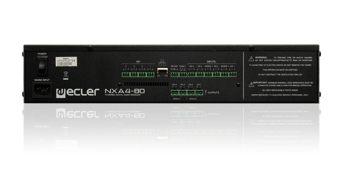 NXA4-80 to 4-kanałowy menedżer cyfrowy o mocy 80 W, z własnym zasilaniem, będący w połowie drogi pomiędzy matrycą cyfrową a wzmacniaczem wielokanałowym. Cyfrowe urządzenie audio typu „wszystko w jednym", które staje się kompletnym rozwiązaniem audio, obejmującym kilka opcji zdalnego sterowania i długą listę inteligentnych funkcji.