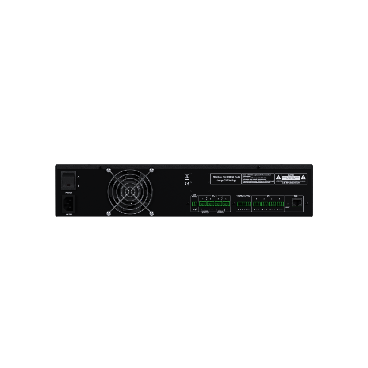 - 2 x 800 W @ HiZ (100/70 V) w trybie mostkowym.