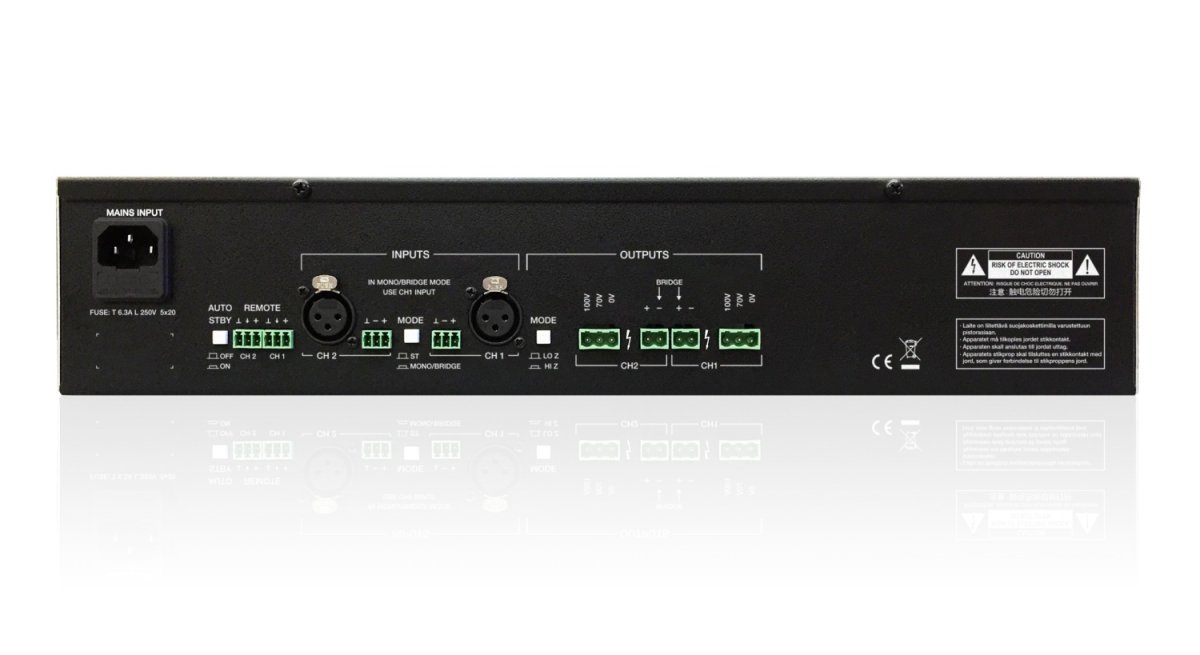 2 x 400 W RMS output (4Ω and 70/ 100V line level)