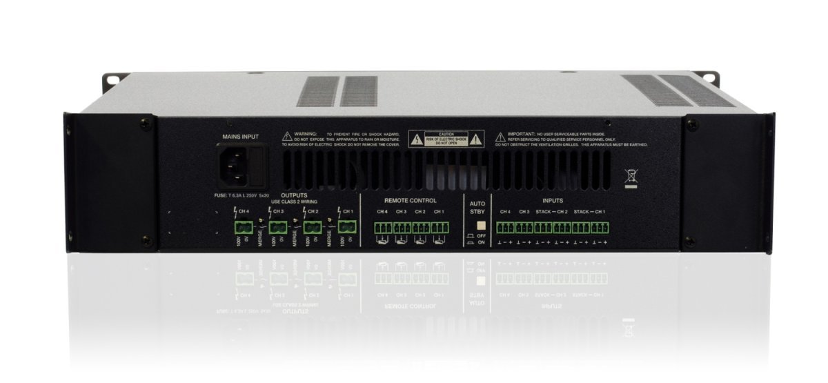 - 4 wzmocnione wyjścia (poziom liniowy 100 V)