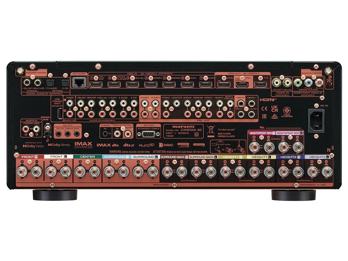 - inżynieria bez kompromisów: technologie Hi-Fi, takie jak HDAM SA-2, monolityczne symetryczne wzmacniacze, zasilacze oparte na transformatorach toroidalnych i inne, podnoszą CINEMA 30 do poziomu wydajności rzadko spotykanego w AVR