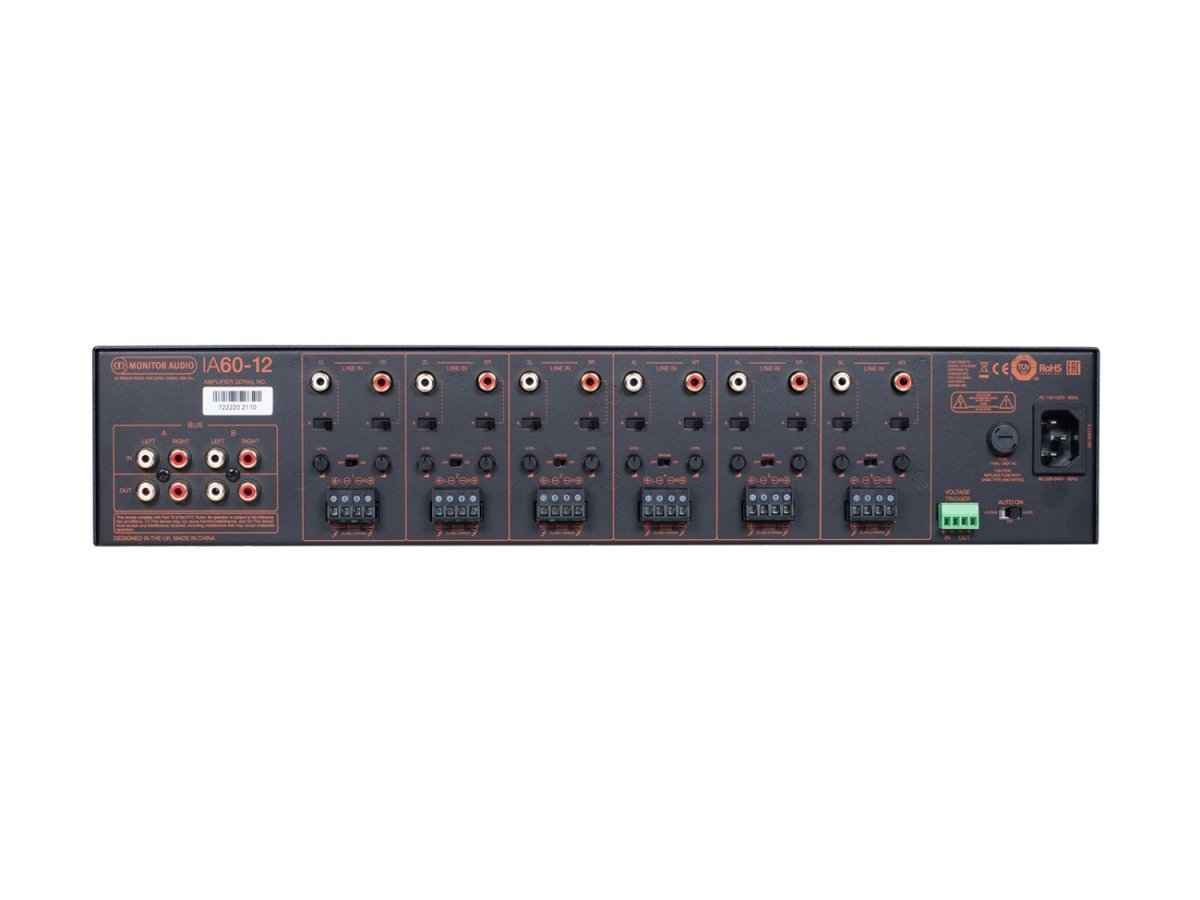 Pochodzący z linii wzmacniaczy dystrybucyjnych Monitor Audio, skrupulatnie zaprojektowanych, aby zadowolić klienta i instalatora, wzmacniacz IA60-12 może zasilać do 12 kanałów (sześciu par stereo), umożliwiając konfiguracje z 1, 2, 3, 4, 5, 6 lub 12 kanałami. Wykorzystano moduły wzmacniaczy Hypex, umieściliśmy je w obudowach o wysokości 2U, na froncie dodalno przełącznik zasilania, a wejście wyzwalacza/triggera (- 3 - 30 V AC lub DC) dostarcza sygnał do dodatkowych wzmacniaczy lub innego sprzętu.