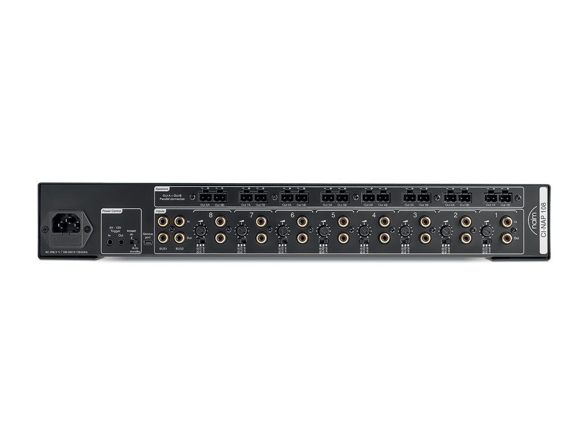 Łatwy, szybki i dyskretny w instalacji (montaż w szafie rack), CI-NAP 108 umożliwia pokrycie rozległych obszarów odsłuchowych dzięki 8 dostępnym kanałom, bez uszczerbku dla charakterystycznej jakości dźwięku Naim - dźwięku światowej klasy. Lokalne wejścia umożliwiają również rozdzielenie 8 różnych strumieni, co zapewnia jeszcze większą elastyczność.