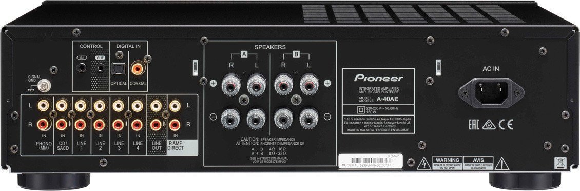 Projekt Pioneers Direct Energy opiera się na koncepcji Direct Energy bezstratnego transferu energii ze wzmacniacza do głośników. Dziedzicząc tę filozofię, najnowsze wzmacniacze zintegrowane charakteryzują się zoptymalizowanymi blokami zasilania/obwodów wyjściowych, a także rozmieszczeniem części. Rezultatem jest doskonały transfer sygnału i wysoki stosunek sygnału do szumu. Dodatkowo A-40AE wykorzystuje nowo opracowaną konstrukcję Direct Energy, która dostarcza energię do podłoża poprzez ułożenie oddzielnego podłoża w celu uzyskania najkrótszej możliwej ścieżki zasilania za pomocą przewodu. Dzieje się tak dlatego, że przewody mają elementy indukcyjne i mogą powodować zakłócenia. Dzięki tej znaczącej zmianie można jeszcze bardziej zmniejszyć utratę sygnału i szumy, aby zapewnić dźwięk o szerokim polu dźwiękowym i wyraźnym obrazie dźwiękowym.