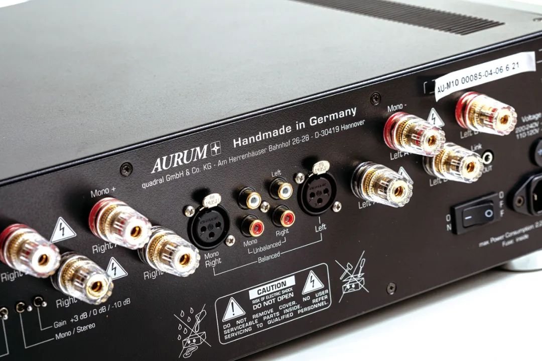 Ogromna moc w zasięgu ręki i przyjemność odtwarzania robiąca ogromne wrażenie - to najważniejsze cechy nowego wzmacniacza AURUM M10. Wyrazista struktura separowanych kanałów i wyjątkowo mocne zasilanie oraz, oczywiście, starannie wyselekcjonowane podzespoły elektroniczne sprawiają, że AURUM M10 to prawdziwie harmonijny wzmacniacz mocy. Stojący na szczycie serii AURUM model może być użyty zarówno w konfiguracji monofonicznej, jak i stereofonicznej; w trybie monofonicznym dostępnych jest ponad 1000 W przy 4 omach. Zapewnia on zapierający dech w piersiach muzyczny detal o największym stopniu wyrafinowania. M10 jest olśniewający, mocny i czysty; z naturalnością i niespożytą wolą dostarcza ci to, co najlepsze.