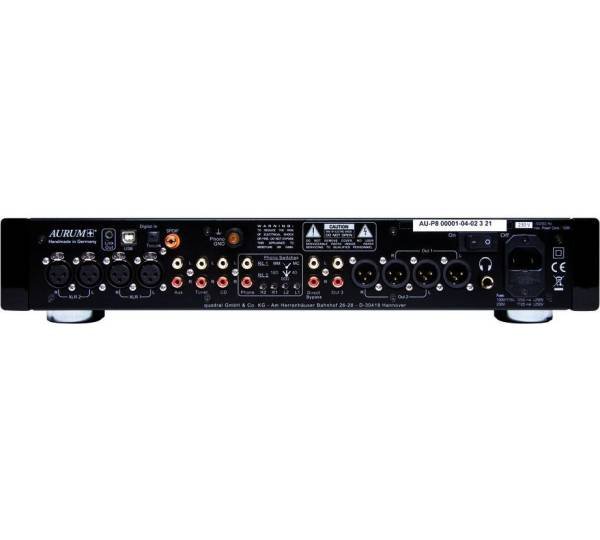 Najwyższa jakość dźwięku może być z łatwością zrealizowana. Wystarczy włączyć w Twój system, wykonany ręcznie w Niemczech, przedwzmacniacz P8. Został on wyposażony w cztery równoległe symetryczne wyjścia, ponadto produkty AURUM wykorzystują wyrafinowane filtry sieciowe zapewniające doskonałe brzmienie bez względu czy wykorzystywany jest obwód symetryczny czy niesymetryczny. Zastosowano oddzielne zasilanie obwodów cyfrowych i analogowych, przetworniki cyfrowo analogowe Burr Brown 192kHz/24-bit, a także ekstremalnie precyzyjną regulację wzmocnienia zapewaniającą równowagę poszczególnych kanałów na poziomie 0.1 dB.