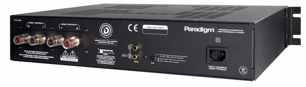 Wzmacniacz klasy Ultra-D™ przeznaczony do zasilenia jednego bądź dwóch instalacyjnych subwooferów Paradigm. Wzmacniacz wyposażono w specjalny soft EQ oraz gniazdo USB. Pozwala to na skorzystanie z opcji kalibracji z wykorzystaniem systemu PBK.