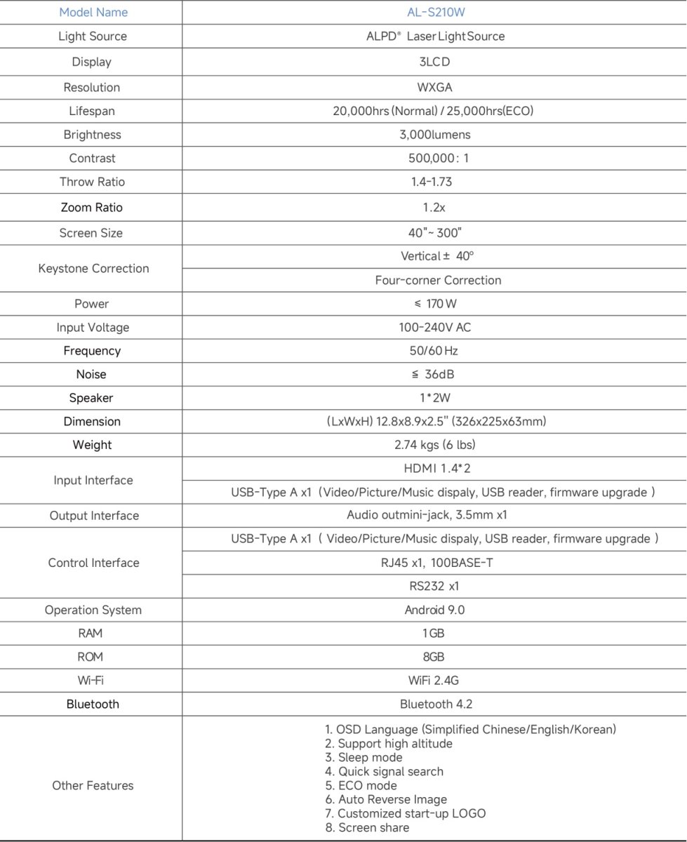 Projektor Appotronics S2 Series AL-S210W