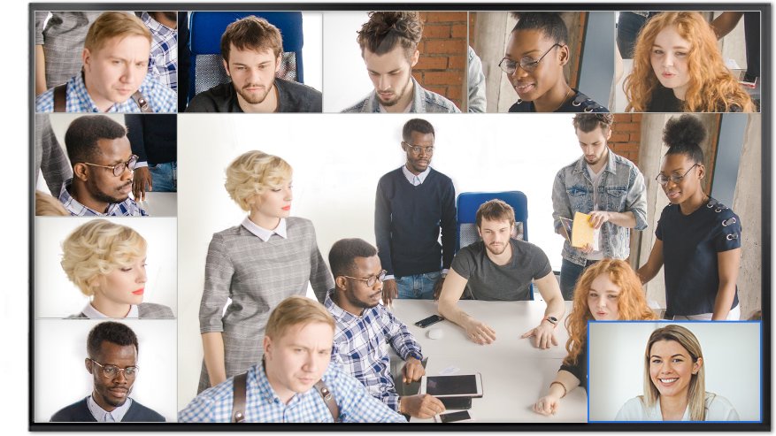 To funkcja, dzięki której każdy ma własne wirtualne miejsce podczas spotkań. Uruchomienie tej funkcji umożliwia widok każdego uczestnika na ekranie podczas spotkań online.
