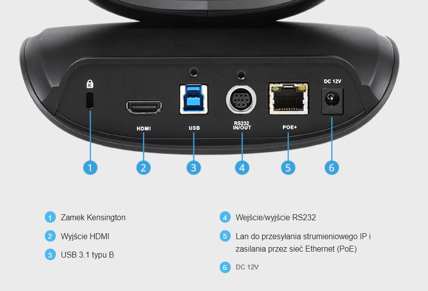 Zestaw wyposażony w kamerę do wideokonferencji z 2 wbudowanymi obiektywami. Model przechwytujący obraz w standardzie rozdzielczości 4K. 12-krotny zoom optyczny zapewnia precyzyjne powiększenie obrazu bez utraty na jakości. Technologia Plug&Play zapewnia szybkie i proste podłączenia urządzenia do komputera i rozpoczęcia spotkania online.