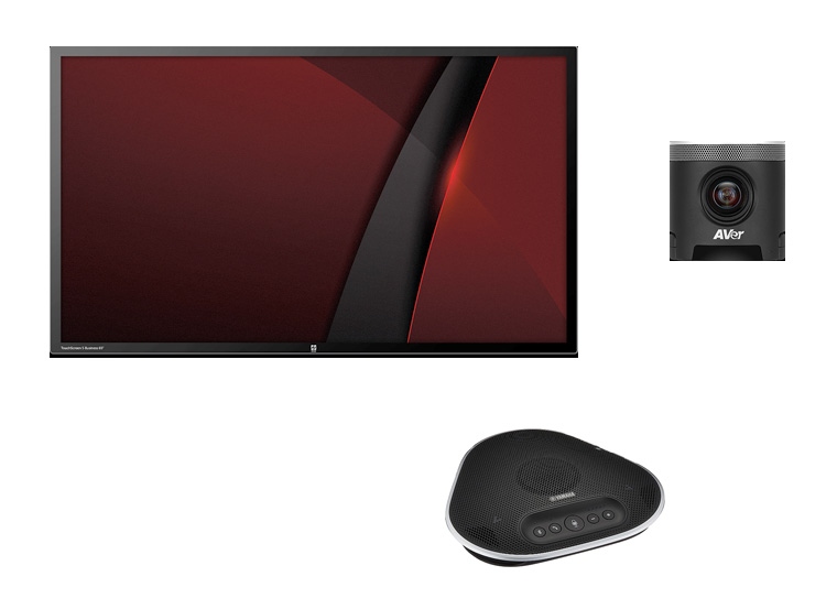 W skład zestawu wchodzi: kamera 4K posiadająca szerokokątny obiektyw z wbudowanym mikrofonem, telefon konferencyjny Yamaha oraz 55" monitor interaktywny Avtek. Zestaw przeznaczony do użytku w małych i średnich salach konferencyjnych, mieszczących maksymalnie 6 osób, dla użytkowników, którzy przychodzą ze swoim laptopem i podłączają się do zainstalowanego zestawu.