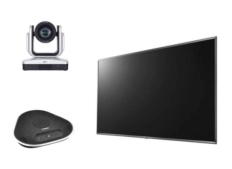 W skład zestawu wchodzi: kamera Full HD z 12-krotnym zoomem, telefon konferencyjny Yamaha oraz monitor 55"LG. Zestaw przeznaczony do użytku w małych i średnich salach konferencyjnych, mieszczących maksymalnie 6 osób. Przeznaczony dla użytkowników, którzy przychodzą ze swoim laptopem i podłączają się do zainstalowanego zestawu.
