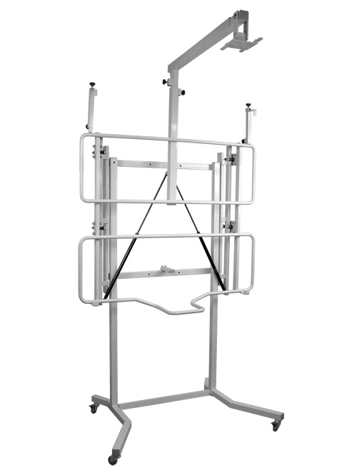 - Statyw zaprojektowany został tak, aby po maksymalnym obniżeniu tablicy i złożeniu ramienia z projektorem mógł przejechać przez drzwi