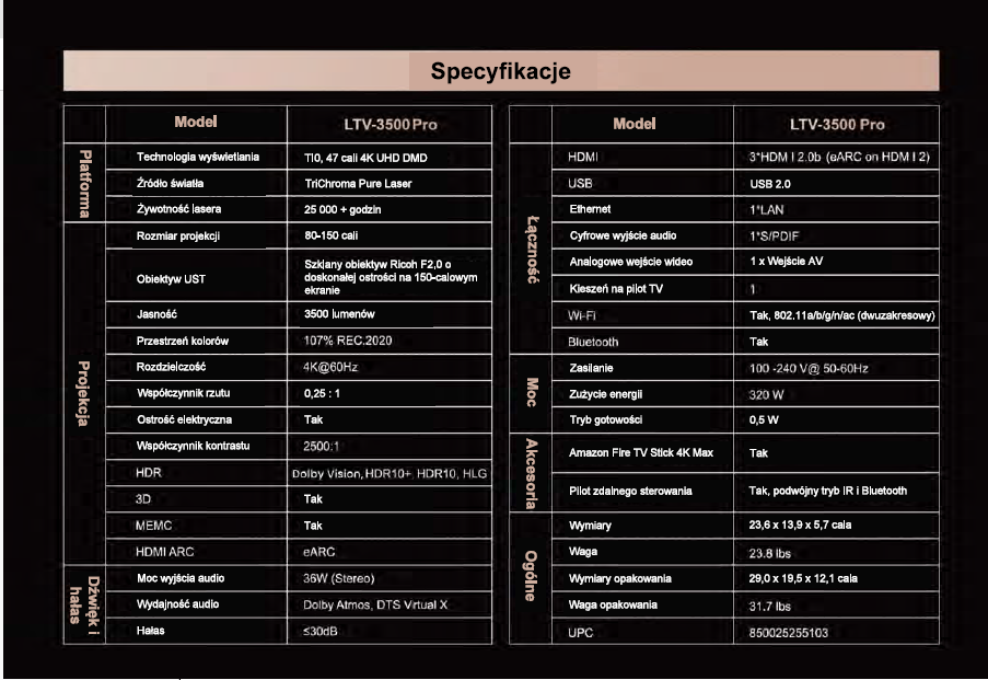 LTV-3500 PRO oferuje wyjątkową rozrywkę domową z ostrzejszym obrazem i bezproblemową kompatybilnością z inteligentnymi urządzeniami domowymi.