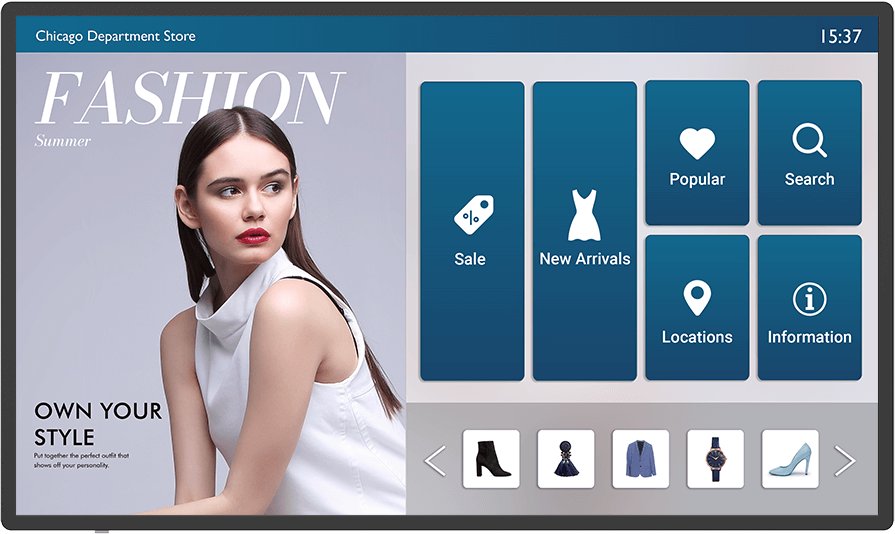 Przyciągaj, informuj i angażuj klientów dzięki monitorowi z wbudowanym systemem operacyjnym, szerokopasmowymi głośnikami i swobodą prezentowania swojej marki bez konieczności stosowania jakichkolwiek urządzeń peryferyjnych. Uruchamiaj promocje bezpośrednio z X-Sign, odtwarzaj treści prosto z dysku USB lub wyświetlaj swoją witrynę w trybie kiosku.