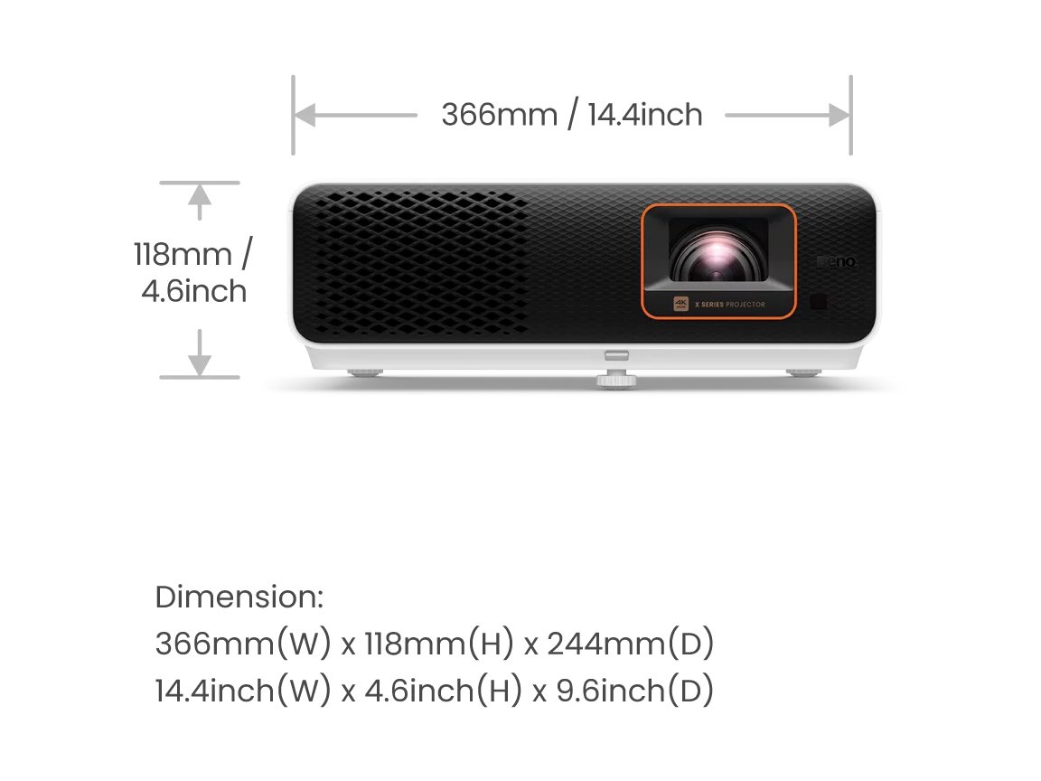Dzięki współczynnikowi projekcji 0,69~0,83 i 1,2-krotnemu powiększeniu możesz bez wysiłku dostosować rozmiary ekranu do różnych przestrzeni i wyświetlać urzekający ekran 95" z odległości zaledwie 1,44 m, aby zapewnić rozległą rozrywkę. Wszystko to bez kłopotów ze skomplikowaną instalacją.