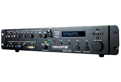 Christie® SKA-3D udostępnia alternatywne treści, takie jak wyświetlanie reklam i treści z odtwarzaczy Blu-ray Disc, konsol do gier, odbiorników satelitarnych, komputerów i wielu źródeł 2D i 3D. Ten potężny procesor audio i wideo może wyodrębnić najnowsze, wysokiej jakości, bezstratne audio z sygnałów HDMI, takich jak Dolby TrueHD® i DTS-HD Master Audio®, do integracji z systemami audio kinowymi.