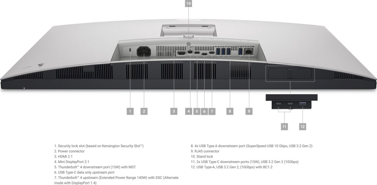 Thunderbolt 4/USB-C 3.2 Gen 2 upstream/DisplayPort 1.4 (Up to 140W EPR)