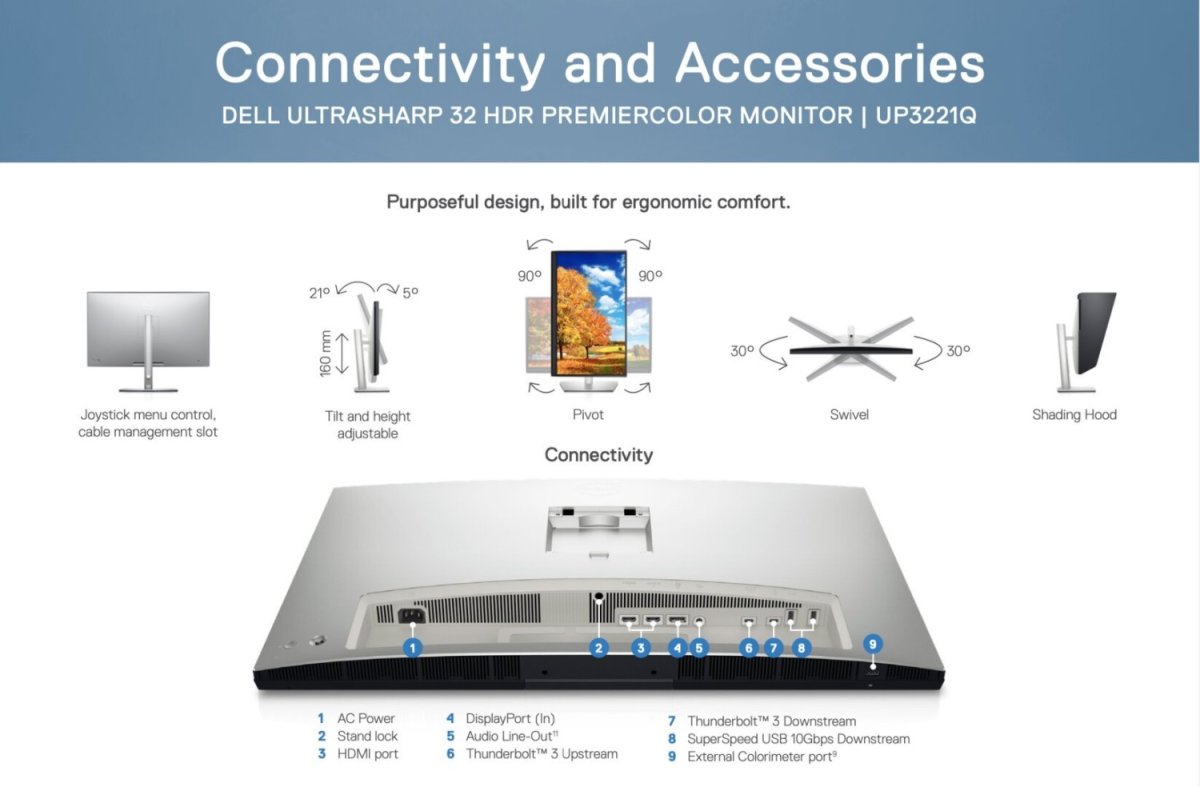Twórz w trybie HDR na tym monitorze 31,5" UltraSharp PremierColor 4K: pierwszym na świecie profesjonalnym monitorze ze strefami przyciemniania z 2000 minidiod LED.