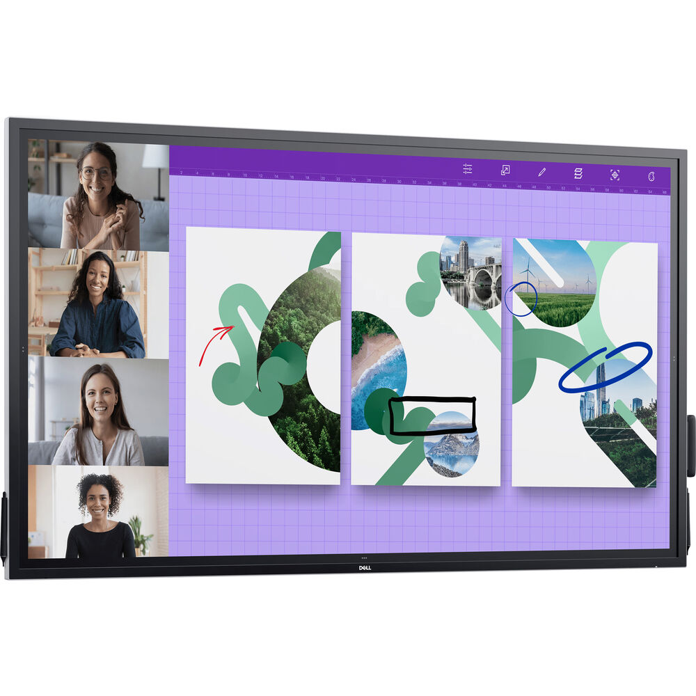 Bezproblemowa integracja z rozwiązaniami Dell do sal konferencyjnych— ten interaktywny monitor dotykowy został odpowiednio przetestowany pod kątem współpracy z kompleksowymi ekosystemami do sal konferencyjnych, które zapewniają dźwięk i obraz wysokiej jakości oraz zaawansowane funkcje sterowania dzięki komputerowi OptiPlex Micro.