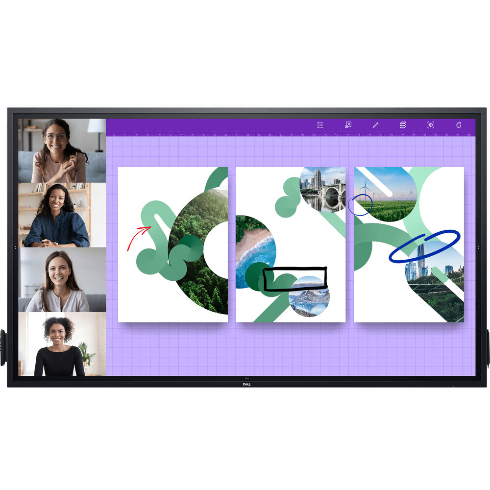 Ścisła integracja z rozwiązaniami Dell Meeting Space: Ten interaktywny monitor dotykowy został przetestowany i zatwierdzony do współdziałania z kompletnym wyposażeniem sal konferencyjnych, w tym wysokiej jakości systemami obsługi audio i wideo oraz systemami sterowania, obsługiwanym przez komputery OptiPlex Micro.