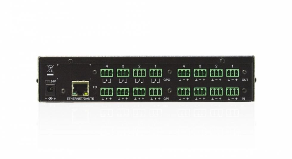 DN44BOB to 4 wejścia i 4 wyjścia DANTE (Audio Over IP) Break Out Box. Umożliwia konwersję 4 analogowych sygnałów audio na 4 kanały DANTE i przesłanie ich do sieci Ethernet LAN, a także pobranie 4 kanałów DANTE z sieci Ethernet i konwersję ich na analogowe sygnały audio. Zawiera 4 porty sterujące GPI (0-10VDC) i 4 porty sterujące GPO (przekaźniki NO/NC). Może być używany razem z produktami EclerNet DANTE lub jako samodzielny interfejs DANTE, razem z dowolnym urządzeniem audio, w tym analogowymi wejściami i/lub wyjściami audio.
