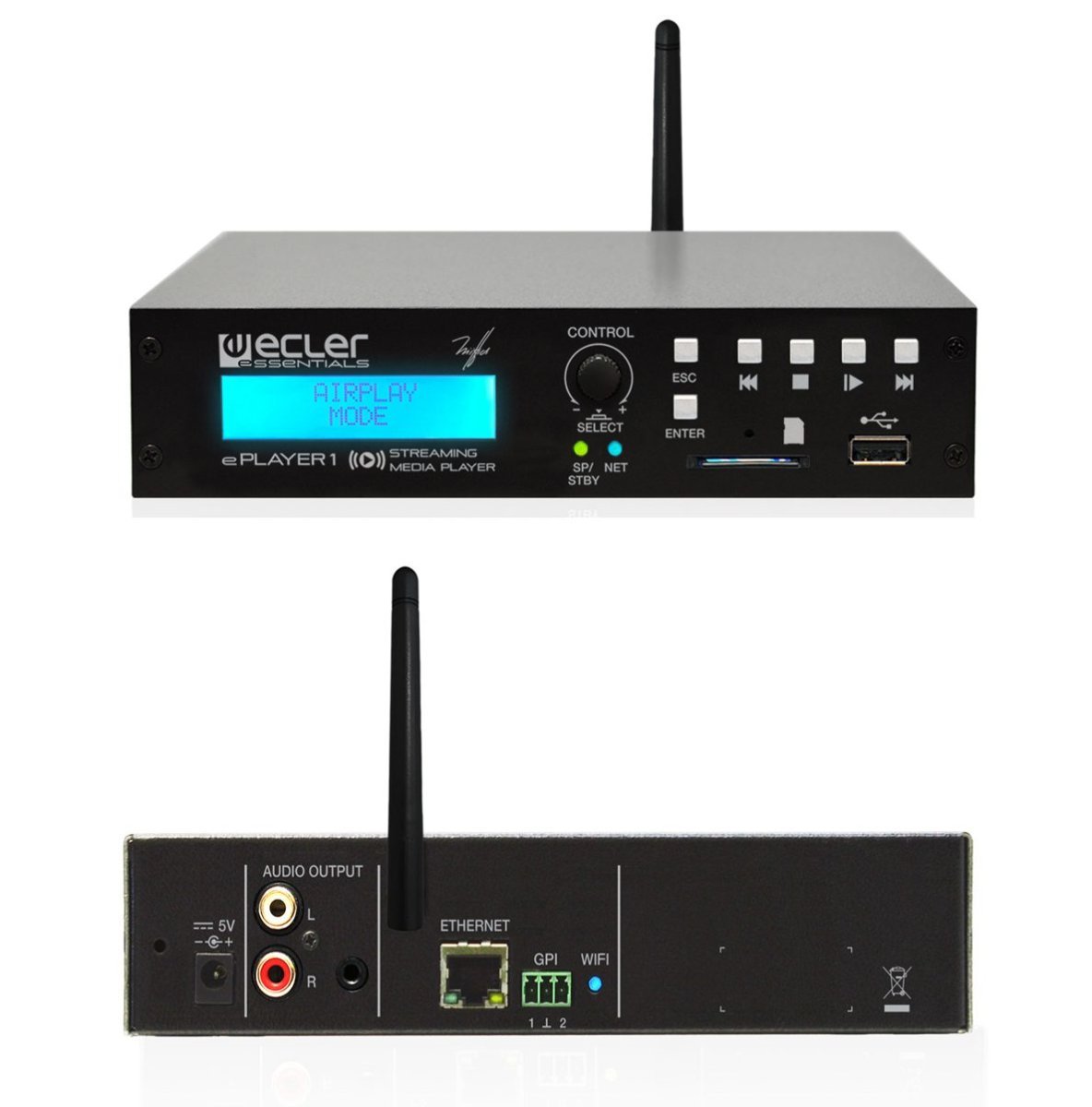 Kompaktowy odtwarzacz audio z wyjściem stereo, który może odtwarzać pliki nośników USB i kart SD, strumienie internetowe oraz strumienie z użyciem DLNA i Airplay. Obsługuje połączenie Wi-Fi, posiada port Ethernet, gniazda USB i Micro-SD a także wyświetlacz LCD i przyciski sterujące na przednim panelu. Wymiary 241x44x152mm. Możliwość montażu dwóch odtwarzaczy w przednim panelu 1RU z zestawem 1UHRMKIT). Waga 680g.
