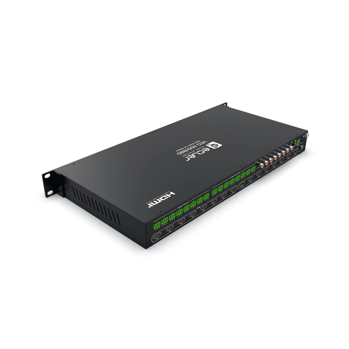 - 8 wejść HDMI 2.0 i 8 wyjść HDMI 2.0 dla elastycznego kierowania sygnału.