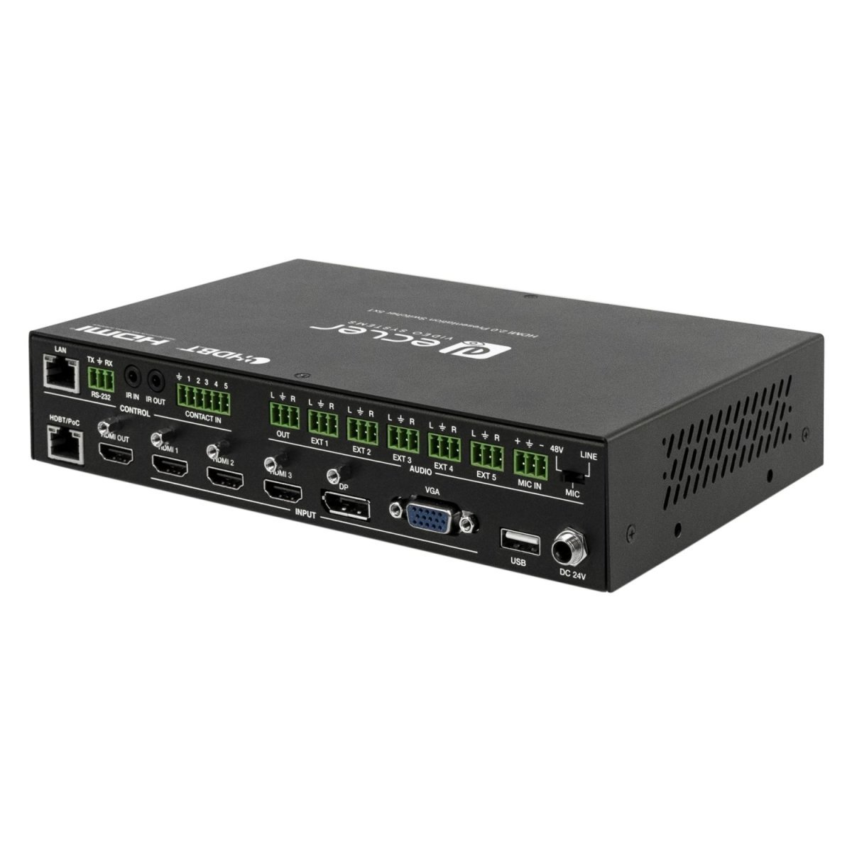 Zintegrowana matryca audio pozwala na osadzenie 5 niezbalansowanych sygnałów stereo i skierowanie ich niezależnie na wyjście. Dzięki przyjaznym opcjom sterowania VEO-SWM45 jest elastycznym i inteligentnym rozwiązaniem, dostosowanym do małych i średnich zastosowań komercyjnych, takich jak środowiska korporacyjne, edukacyjne i szkoleniowe.