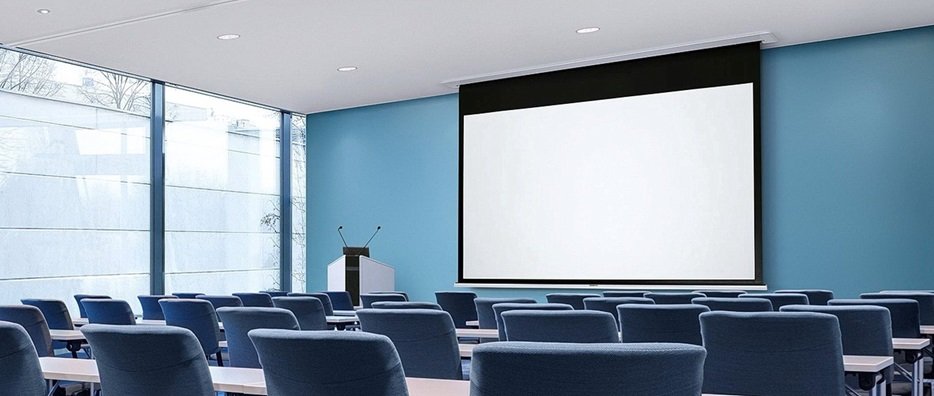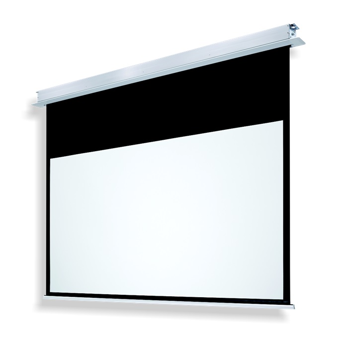 Elektrycznie rozwijany ekran projekcyjny z linii profesjonalnej PREMIUM dedykowany do zabudowy sufitowej