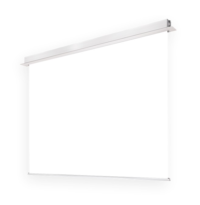 Elektrycznie rozwijany ekran projekcyjny z linii profesjonalnej PREMIUM dedykowany do zabudowy sufitowej ze zintegrowanym sterowaniem IR+RF + złącze RS + Dry Contact