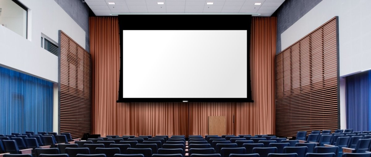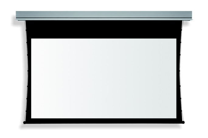 Elektrycznie rozwijany ekran projekcyjny z linii rezydencjonalnej PREMIUM dedykowany do zabudowy sufitowej, z systemem bocznych napinaczy i zintegrowanym sterowaniem IR + złącze RS + Dry Contact