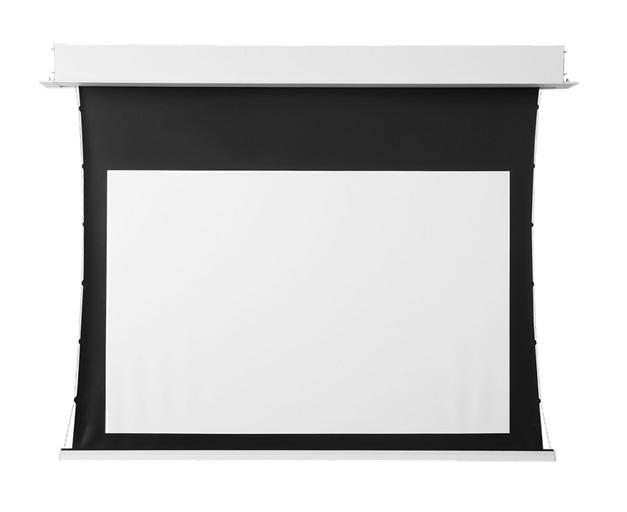 Elektrycznie rozwijany ekran projekcyjny z linii rezydencjonalnej PREMIUM dedykowany do zabudowy sufitowej, z systemem bocznych napinaczy i zintegrowanym sterowaniem IR + RF + złącze RS232/485 + Dry Contact