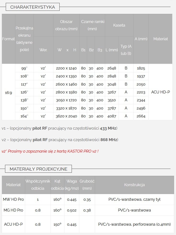 Ekran Elektryczny Do Zabudowy Z Napinaczami Suprema Kastor PRO V1 V2 362x204 cm 16:9 Acoustic HD-P
