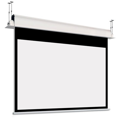 Ekran elektryczny bez czarnych ramek przeznaczony do zabudowy sufitowej.
