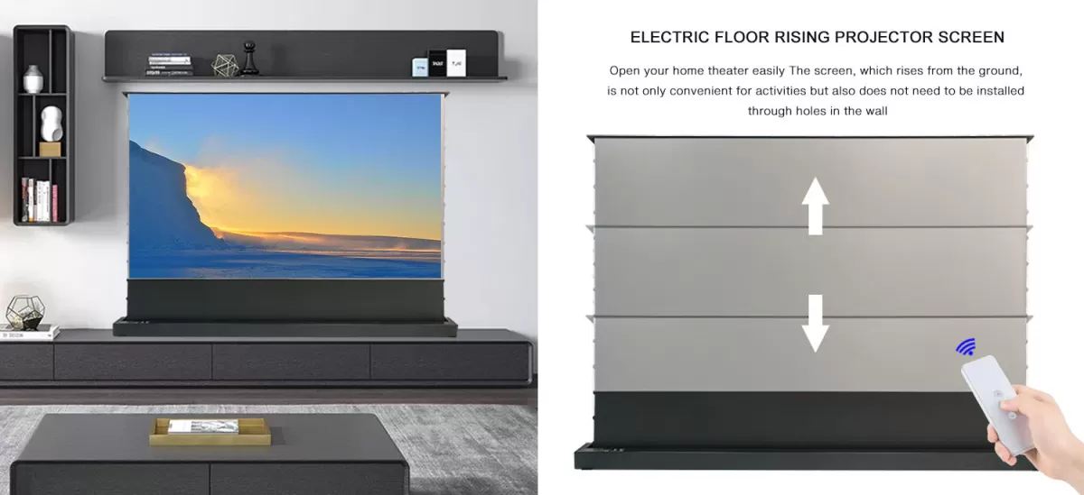 Electric Floor Rising Tension Indoor Screen w/ Smart Voice Control