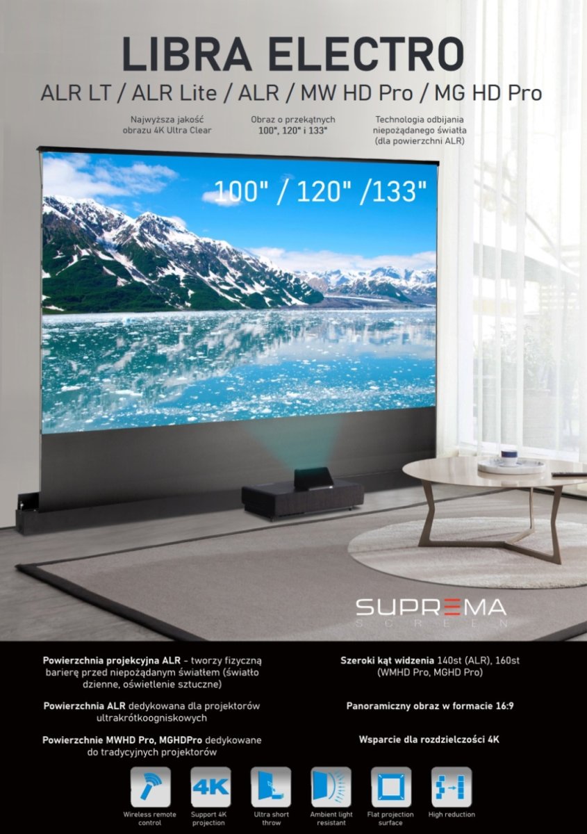 Ekran Przenośny Pull-Up Elektryczny Do Zabudowy Z Napinaczami Suprema Libra Electro 266x149 cm 16:9 Matt Grey HD PRO